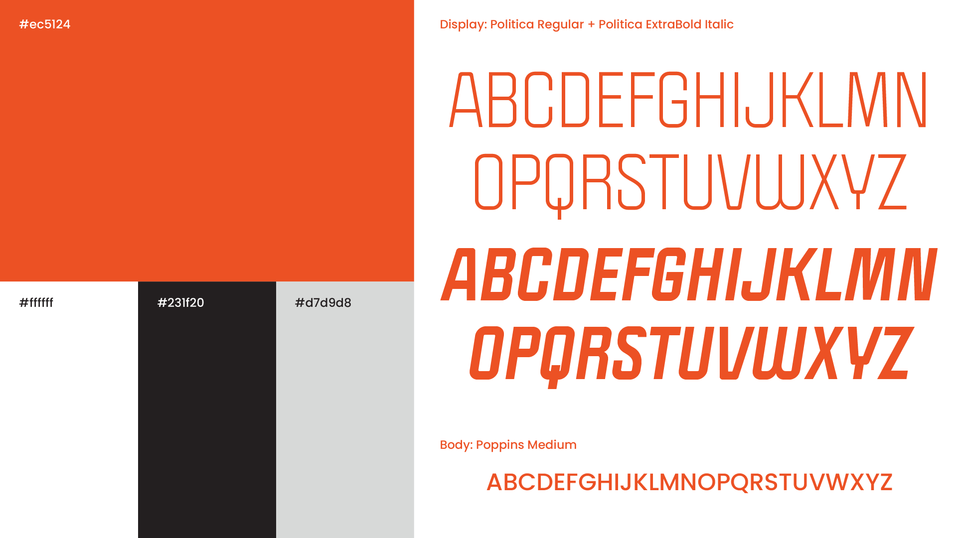 Politica, the sans-serif display font used in the logo and for display headlines, offers a variety of unique usages for this brand. It’s bold and unique look pairs well with the body copy and logo typeface, allowing me to create hierarchy throughout several of the designed pieces below.
